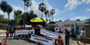 Trabalhadores da AGESPISA realizam ato de protesto em frente ao Palácio de Karnak