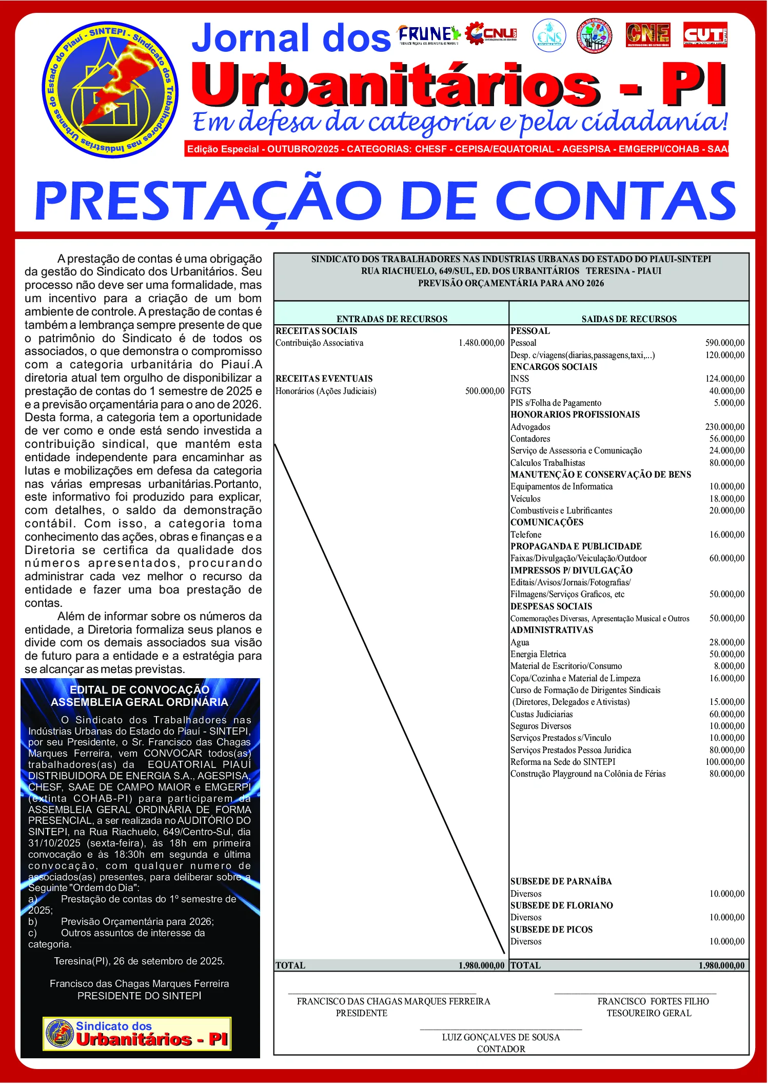 VEJA AQUI O JORNAL DE PRESTAÇÃO DE CONTAS
